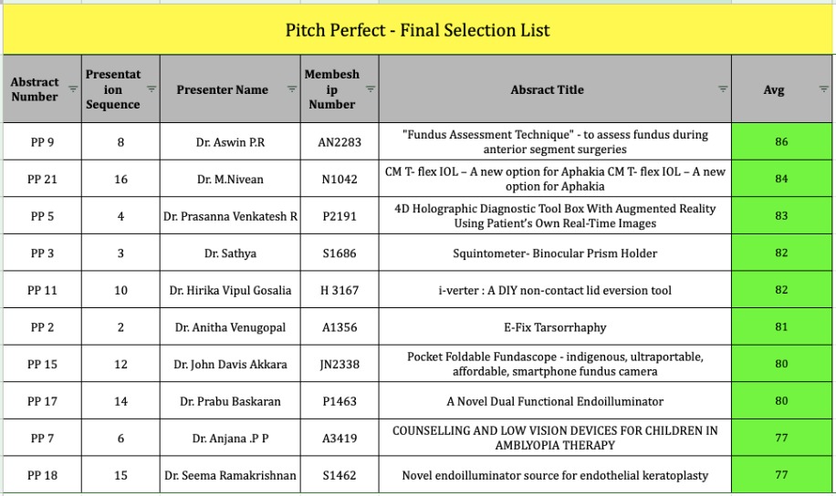 SYMPOSIUMS SELECTED FREE PAPERS SELECTED INSTRUCTION COURSES SELECTED PHYSICAL POSTERS SELECTED E-POSTERS ET SELVAM PG QUIZ SELECTED PHOTOGRAPHY E - VIDEOS BEST VIDEO AWARD SESSION RAPID FIRE SESSION TIME SAVERS PITCH PERFECT E - PHOTOGRAPHY